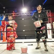 納得のいかないセコンドの邪道と外道がタイガー服部に詰め寄るも、急所攻撃の制裁をくらう。