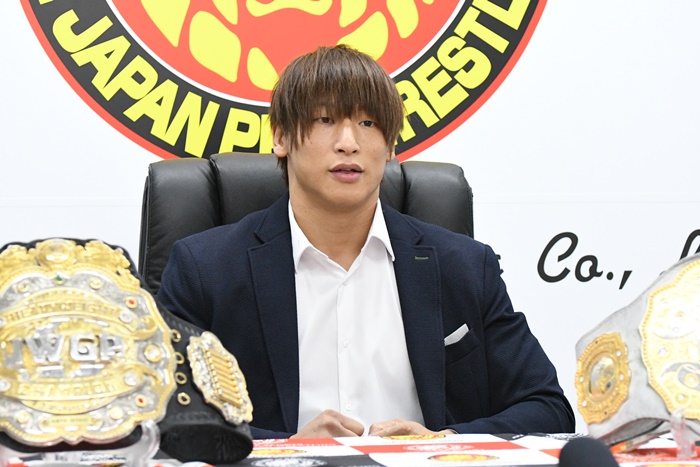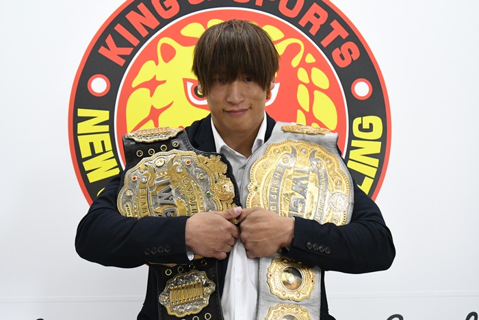 ――昨日はインターコンチネンタル王座の防衛に成功し、そして2本のベルトを保持したまま、IWGP世界ヘビー級初代王者という形で認定されました。4月4日は初めての防衛戦も先程発表されたばかりでございます。この2本ベルト統一という本人の希望通りという形となったわけですが、この辺りを受けまして改めて今日コメントをお願いします。