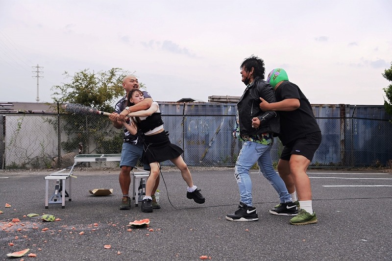 ササダンゴは実験用のスイカを高木の頭でかち割ってダメージを与えると、大仁田を捕獲し羽交い締めにした。すると、クロちゃんは「俺とヒカリの初めての共同作業だ」と叫び、乃蒼とともに電流爆破バットをフルスイング。試合でもないのに、クロちゃんがカバーすると、ササダンゴが3カウントを叩き、勝ちどきを挙げた。