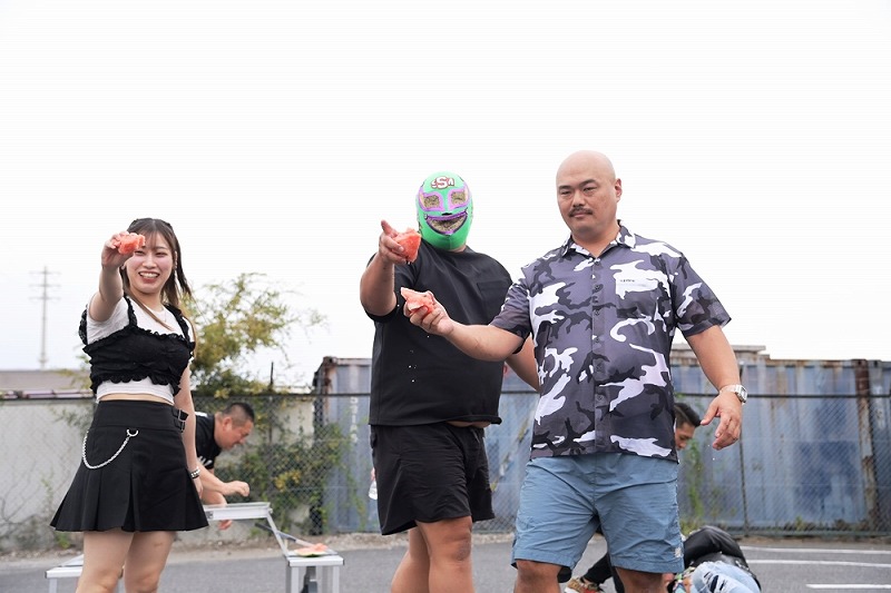 クロちゃんはスイカの破片を大仁田の口に入れて無理やり食べさせると、改めて「電流爆破の利権は俺がもらう」と宣言。さらに、クロちゃんは「やってやるよ。大仁田を引退させてやる。骨まで残らない闘いを見せてやる」と吐き捨てて、クロちゃん軍は退場。