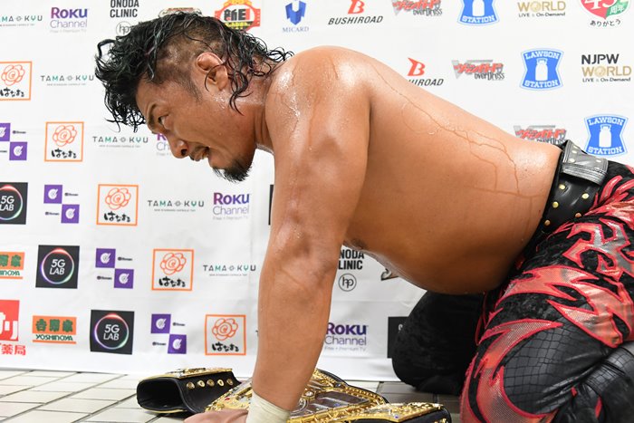 (※ゆっくり立ち上がりながら)だが俺も!このまま引き下がるわけにはいかねえ。俺はベルトどうこうじゃねえよ!まだ『G1』は終わってねえんだ。自分のために、勝ってみせる。(※控室に歩を進めながら)まだまだ。まだまだ……」