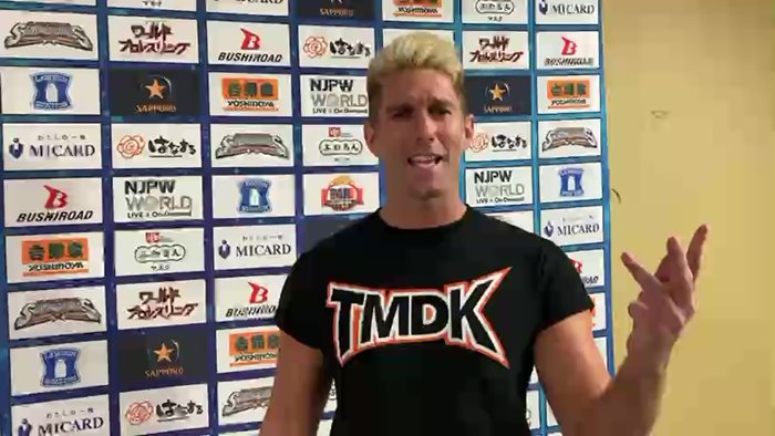 ザック「ヘイヘイヘイ、TMDKに最新のメンバーが加わった。“ザ・ディーザー・オブ・スカイ”ロビー・イーグルスだ。まぁ、当然のことだけどな。マイキー(ニコルス)とシェイン(ヘイスト)がタッグリーグ戦中に声をかけていたんだ。ちょうどいいタイミングだったな。ロビー・イーグルスは以前、(IWGP)ジュニアヘビー級の王者だった。リョーゴク・コクギカンでもう1度、挑戦する。そして彼はベルトを取り戻す。TMDKの下に持ってくる。よく聞け。すでにTMDKにはヘビー級、スーパーヘビー級のメンバーがいる。ザック、シェイン、マイキー、(バッド・デュード)ティトがな。そしてフジタはジュニアヘビー級だが、まだ戦力としては物足りない。ジュニアヘビー級の怪物が欠けていた。それを埋めるのがロビー・イーグルス。彼はオーストラリアで最高のジュニアヘビー級戦士だ。いや、世界最高のジュニアヘビー級戦士。俺がTMDKのフロントマンになって3ヶ月。さて、そろそろ暴れまわろうか」