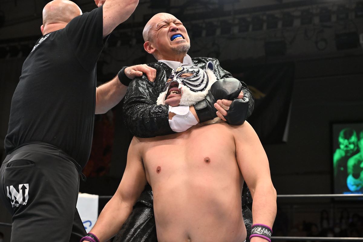 「いつも猪木さんはお客さんと戦ってるのかって言われてましたけど、僕の中ではプラス自分っていうのが居て、なのでお客さんと相手と自分という人間と戦わなきゃいけない。僕の中で1人増えてるんですよ、自分という人間がいるんで。人間てやっぱり弱いとこ強いとこあるんで、気持ち的にも。『俺これだけやったら大丈夫だよ。でももうちょっとかな?』っていうその2人が絶対いるんですよ。そこのところとも戦わなければいけない。それぐらいやっぱりしのぎを削るものであるので。最近そうやって試合をするんで、疲れるんすよ、一段と(笑)。やっぱ反省もしますし、その分リングに対する気持ちというのは本当に昔と比べもんにならないぐらい今はあるので。だからいつもその思いを持てることには感謝しますし、誰よりもそのリングに上がらさせてもらってるっていうことを、戦えてるっていうことにはものすごく感謝してる。それに対しては感謝や恩返しをっていうのは、いつも本能のまま戦うっていう自分を裏切らない。そういうことを思ってどこのリングにも上がるわけですけど、ちょっと気持ちはプラスアルファがあるかな、今回は人に対してもリングに対しても」
