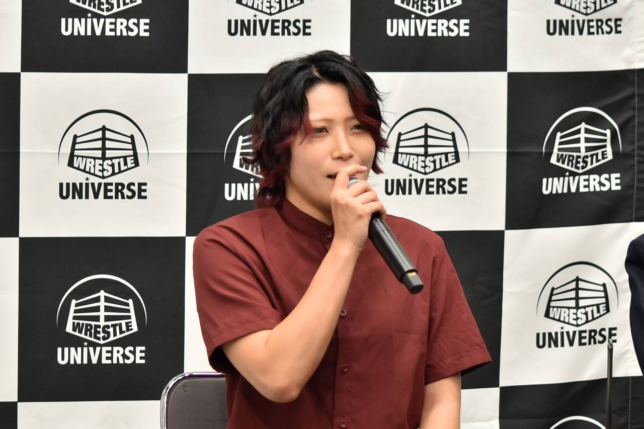 会見には第7試合で雌雄を決する林下詩美、そしてWWEスーパースターとなったイヨ・スカイが出席し、明日の両国国技館大会に向けての意気込みを語った。