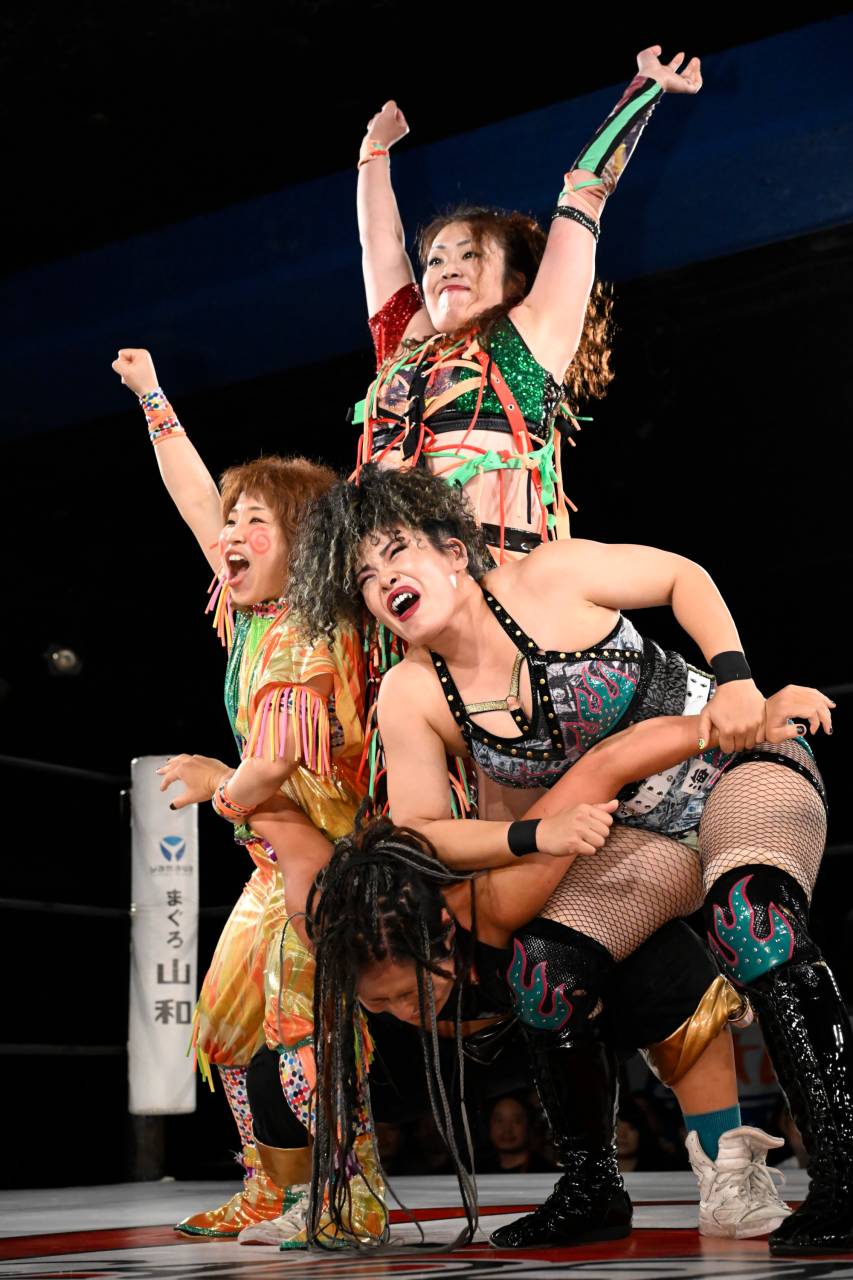 AKINO&●山下りな&ウナギ・サヤカ vs 米山香織&松本浩代&◯ZONES