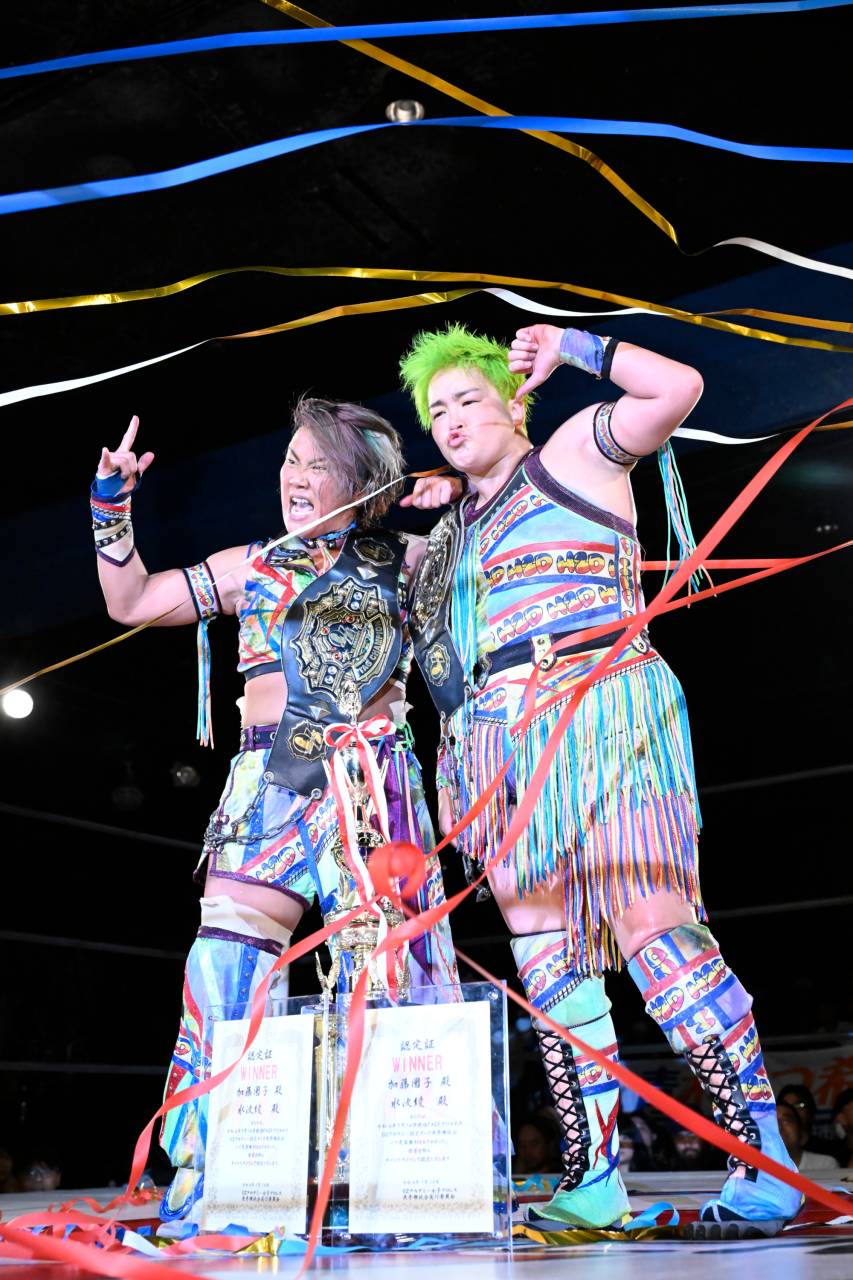 メインイベントで行われたOZアカデミー認定タッグ選手権試合では王者組・加藤園子&水波綾(H2D)が青木いつ希&笹村あやめの挑戦を退け、王座防衛に成功した。