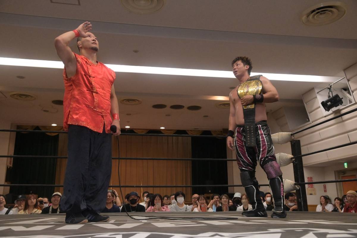 試合後、和田がリングに上がると「よくも趙雲子龍を、いや香港国際警察マンをボコボコにしてくれたな。俺のガンバレ☆プロレスは香港国際警察マンから始まったんだ。俺はオマエに興味あるんだ。1年半、ガンプロでタッグで何回か戦ってきたけど、オマエとやると俺の動きがめちゃくちゃキレが出て。その上で強さとオマエに勝てる実力があると思う」と挑戦表明。石井は「いつかはシングルマッチをやらないといけないと思ってました。和田さん、自分も興味ある。断る理由はない。ぜひ、このベルトをかけてやろう」と応じ、三島通義社長が8・16新木場でのタイトル戦を即決した。