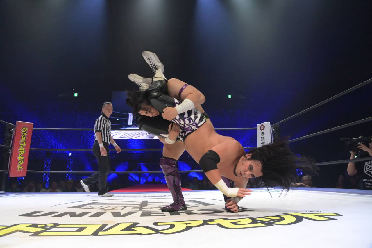 DDTプロレスが7月21日、東京・両国国技館で夏のビッグマッチ「WRESTLE PETER PAN 2024」を開催した。ダムネーションT.Aの佐々木大輔、KANON、MJポー組が「KO-D6人タッグ選手権試合~サバイバル4WAY6人タッグマッチ」を制して、同王座を奪還し、GLEATから契約解除されフリーとなった河上“ファイヤー”隆一と結託した。