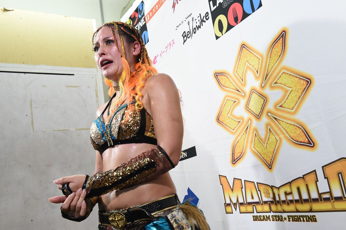 そして迎えた旗揚げ戦。そこでジュリアは右手を負傷、まさかの欠場を強いられてしまう。7・13両国国技館でのSareee戦には間に合うも、12大会を欠場した。ジュリアはリング下からマリーゴールドの試合を見守っていた。それは、観察と言ってもいい。
