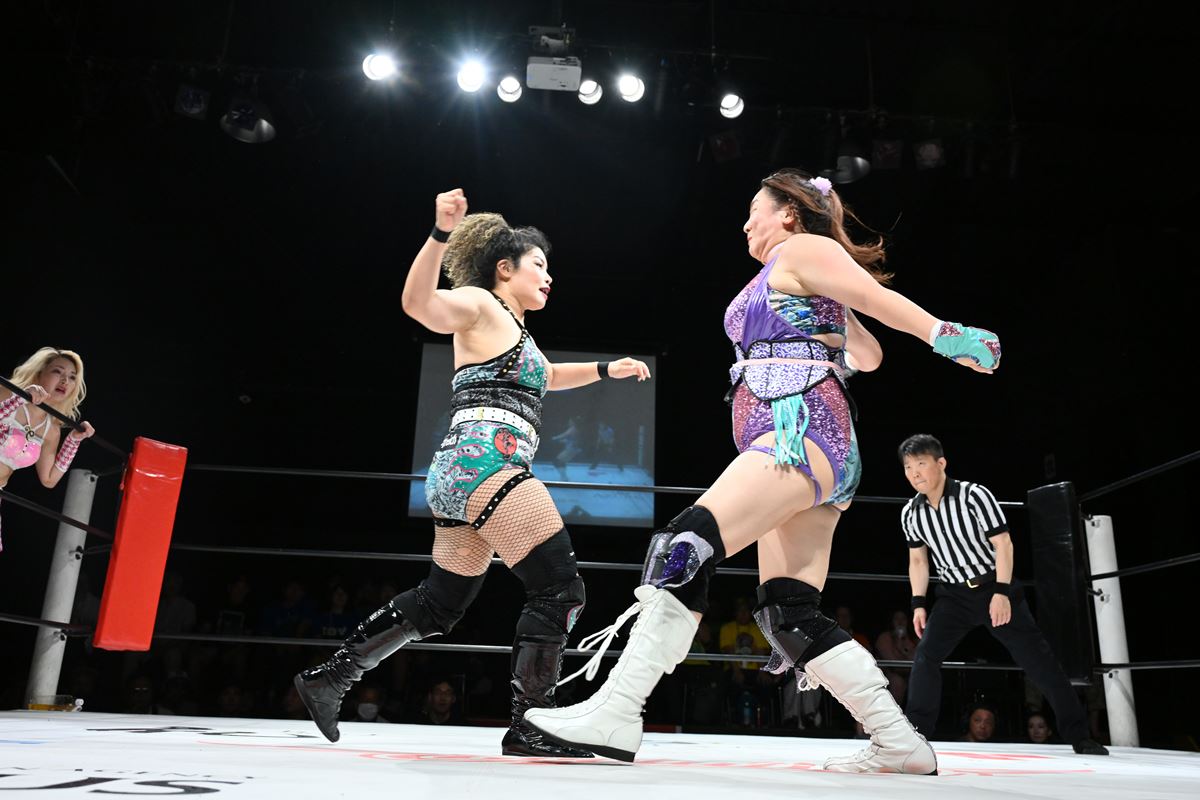 旗揚げから5大会連続でZONESはシングルだけをおこなってきた。山下、松本、水波綾、橋本千紘、アジャコング。以後も女子プロ界のレジェンドやパワーファイターとのシングルマッチが数多く組まれている。大きなダメージは、実績ある選手たちの思いを受け取ってきた証でもある。