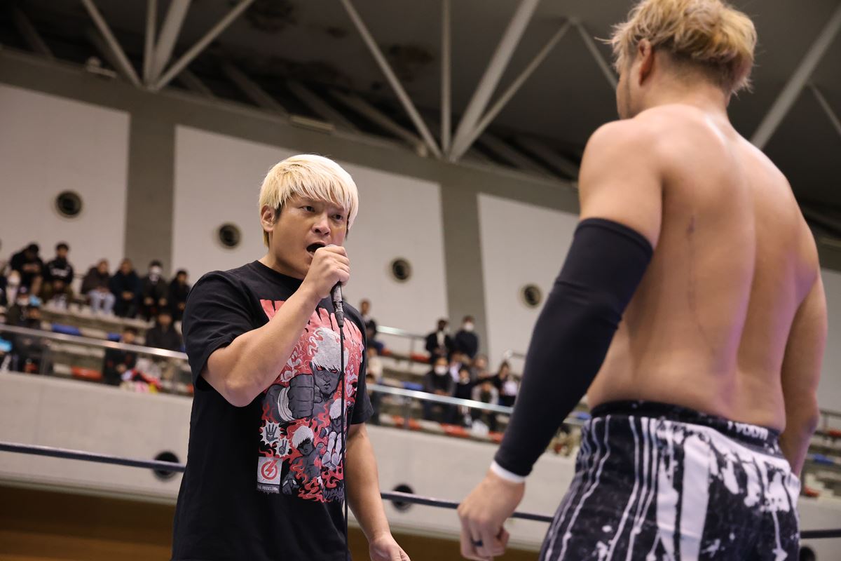 リングサイドでその言葉を聞いたKENTAは一歩も引かず、マイクを受け取ると、まず「こんなど田舎までよく来たよ!」と拳王をからかう一言で場内を沸かせた。そして続けて、「1月1日、日本武道館?断る理由なんかねえよ、やってやるよ!」と快諾した。