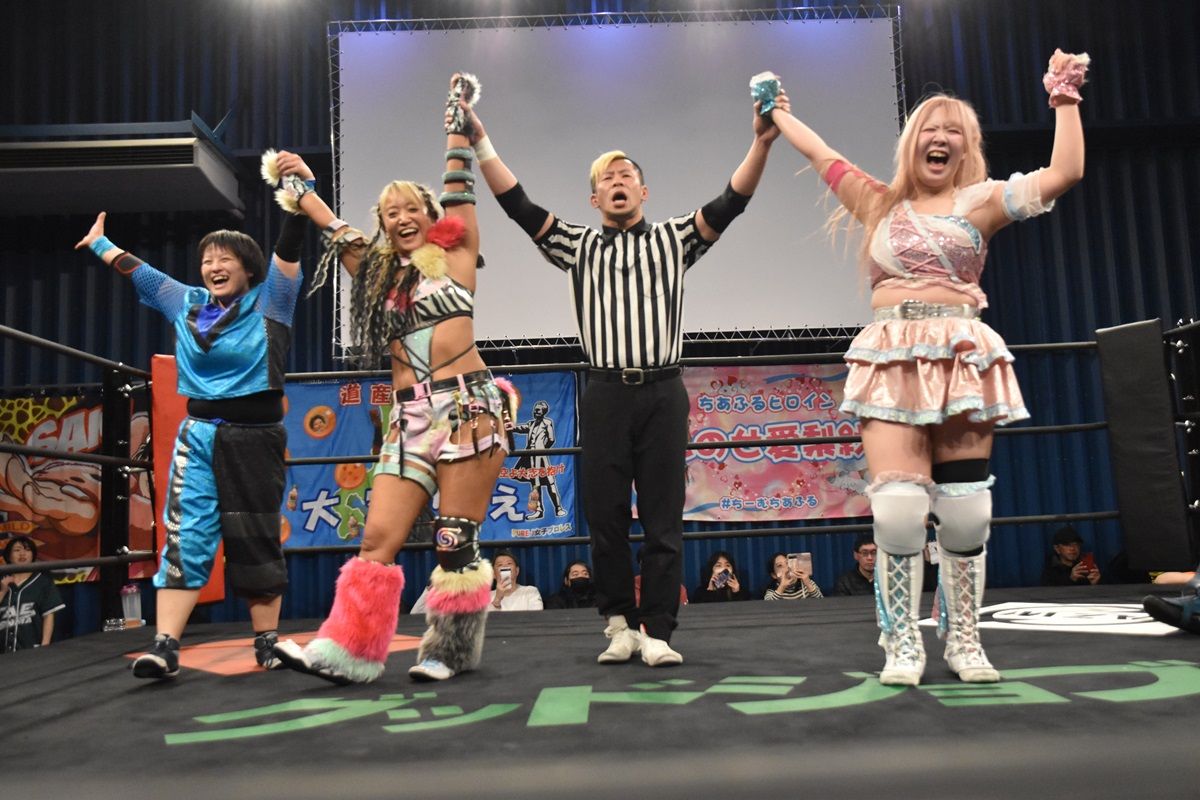 SAKI&〇しのせ愛梨紗&大空ちえ(16分56秒、片エビ固め)紫雷美央&咲蘭&グリズリー藤滝●