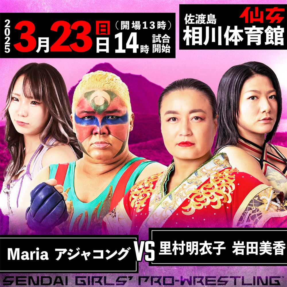センダイガールズプロレスリングは、3月23日(日)に新潟・佐渡島の相川体育館で開催する大会の全対戦カードを発表した。