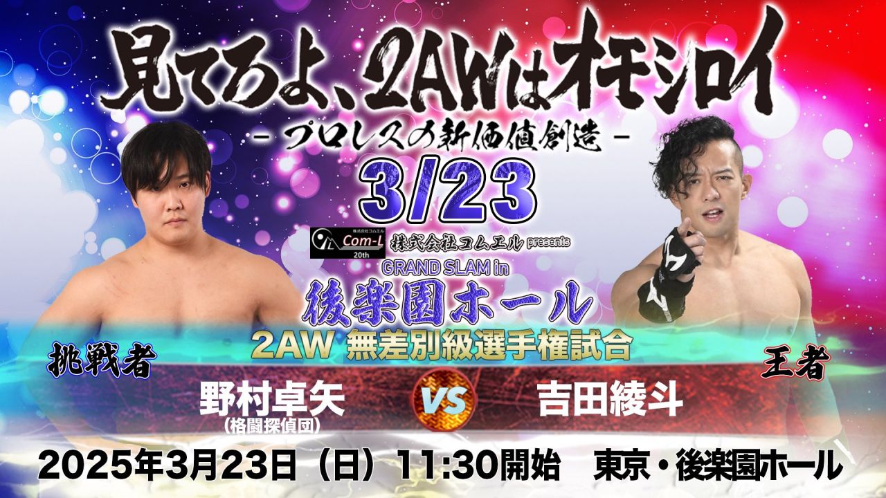 滝澤 今年2AWにとって後楽園ホールでの大会は年に2回しかない貴重な機会です。そのうちの1回が、年度末の忙しい時期に行われるのですが、この大会が2AWにとって大きな転機となるような、そんな大会にしたいと思っています。これからの2AWがどう変わるのか、そのきっかけになる大会になるはずですので、ぜひ多くのファンに足を運んでいただきたいです。