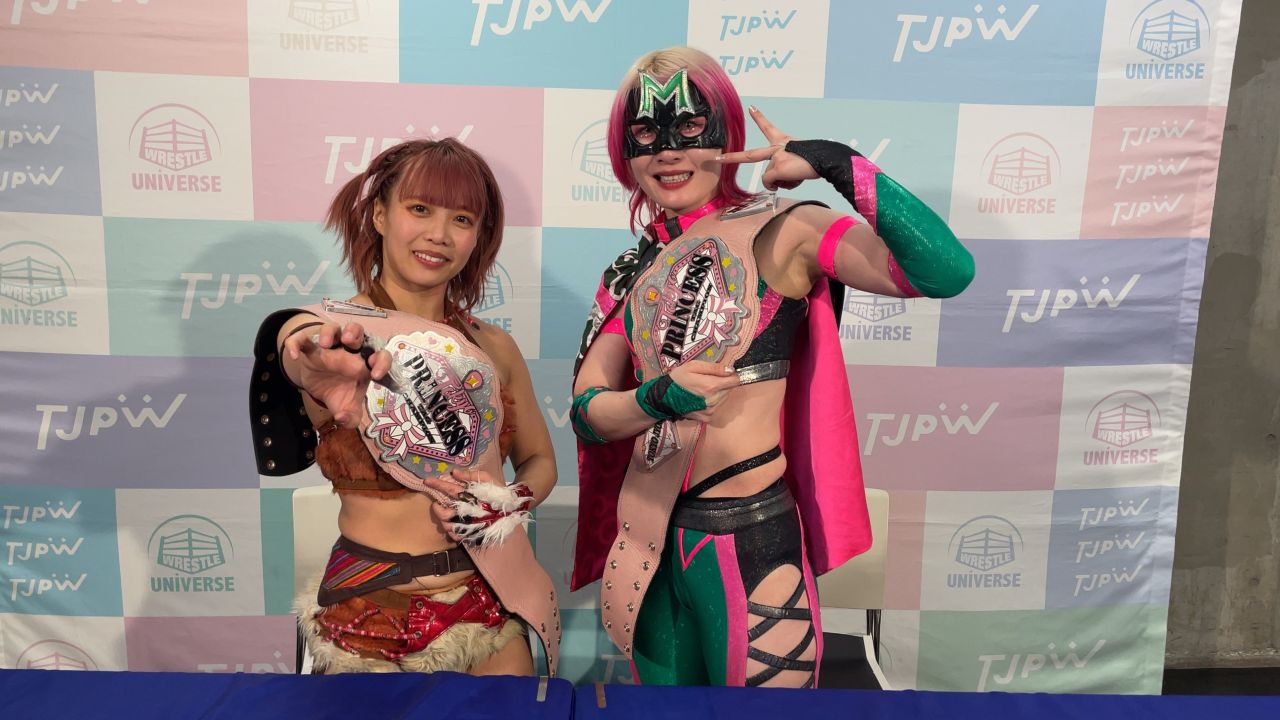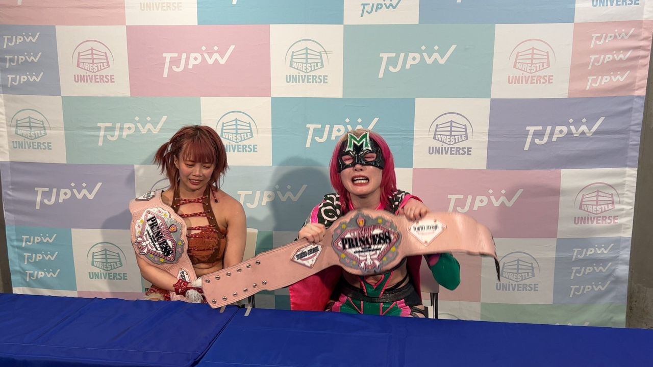 東京女子プロレスは3月16日、大田区総合体育館でビッグマッチ『GRAND PRINCESS ’25』を開催。中島翔子&ハイパーミサヲの”享楽共鳴”が王者組・山下実優&伊藤麻希を破り、プリンセスタッグ王座を奪取した。