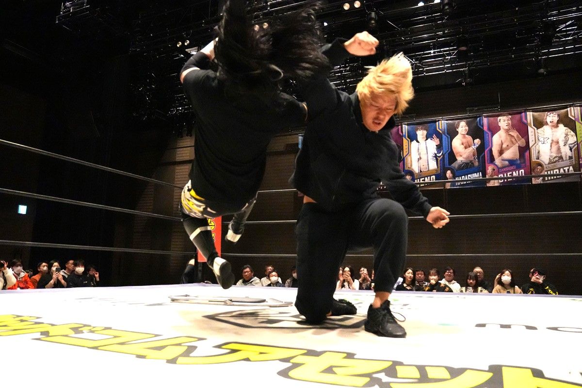 一方、鈴木は「青木真也、面白いじゃん。一緒なのか似てるのか? 青木がプロレスにどっぷり浸かって、あいつが悩むであろうところは俺はとっくに過ぎてるからな。知りたかったら教えてやるよ。ただじゃねぇけど…」とニヤリ。上野勇希から強奪したDDT UNIVERSAL王座の初防衛戦が4.18(現地時間)米ラスベガスでのヨシヒコ戦に決まったが、「人形だろ? あんなのが相手でいいのか? それがDDTの代表でいいのか? おまえらの母屋、全部食っちまうぞ」と言うと、床に座って鈴木のコメントを密かに聞いていたヨシヒコを無視して立ち去った。