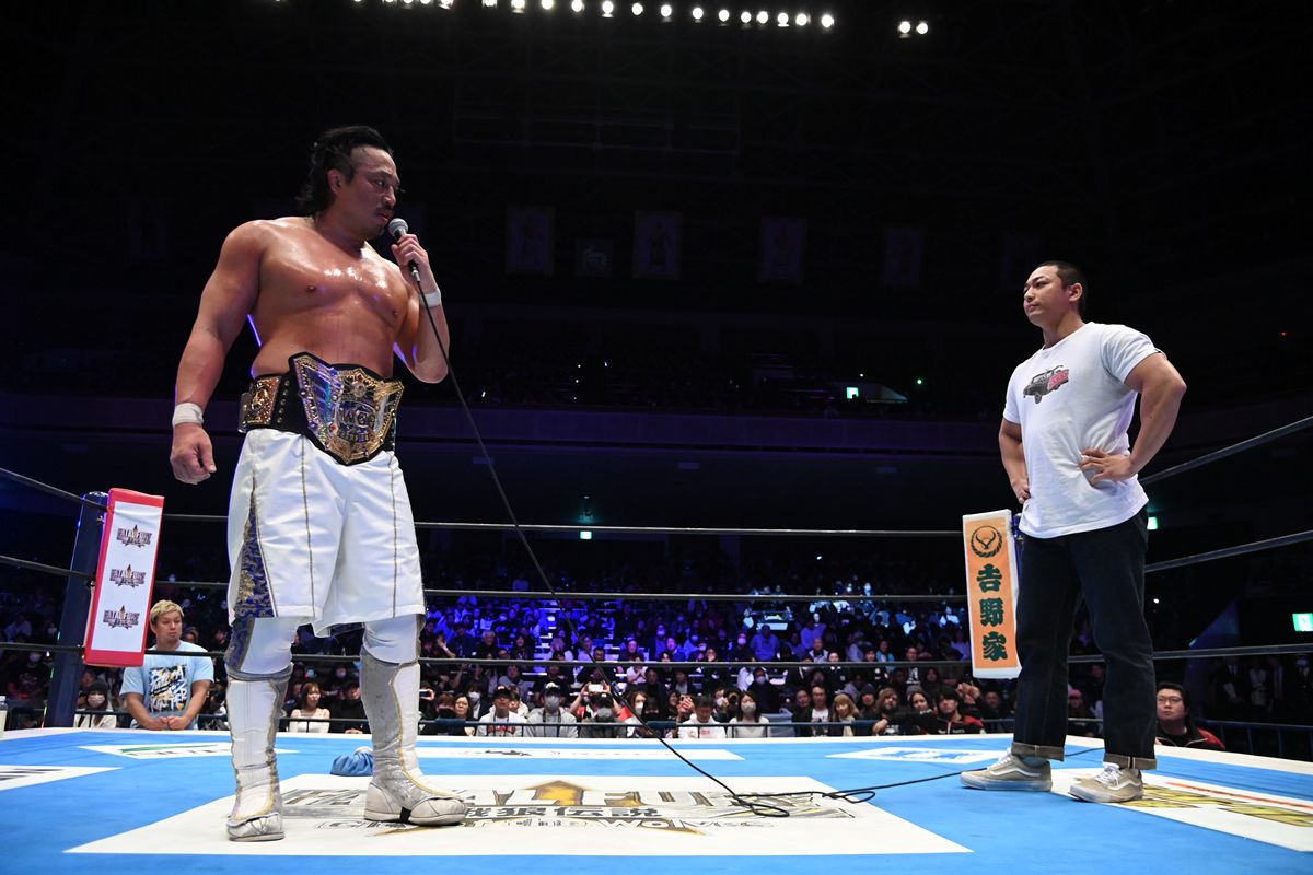 会場がどよめく中、後藤の「出てこいよ!」の呼びかけに応じて現れた海野。ブーイングと歓声が入り混じる中、リングへと上がった海野に対し、後藤は挑戦を正式に提案した。