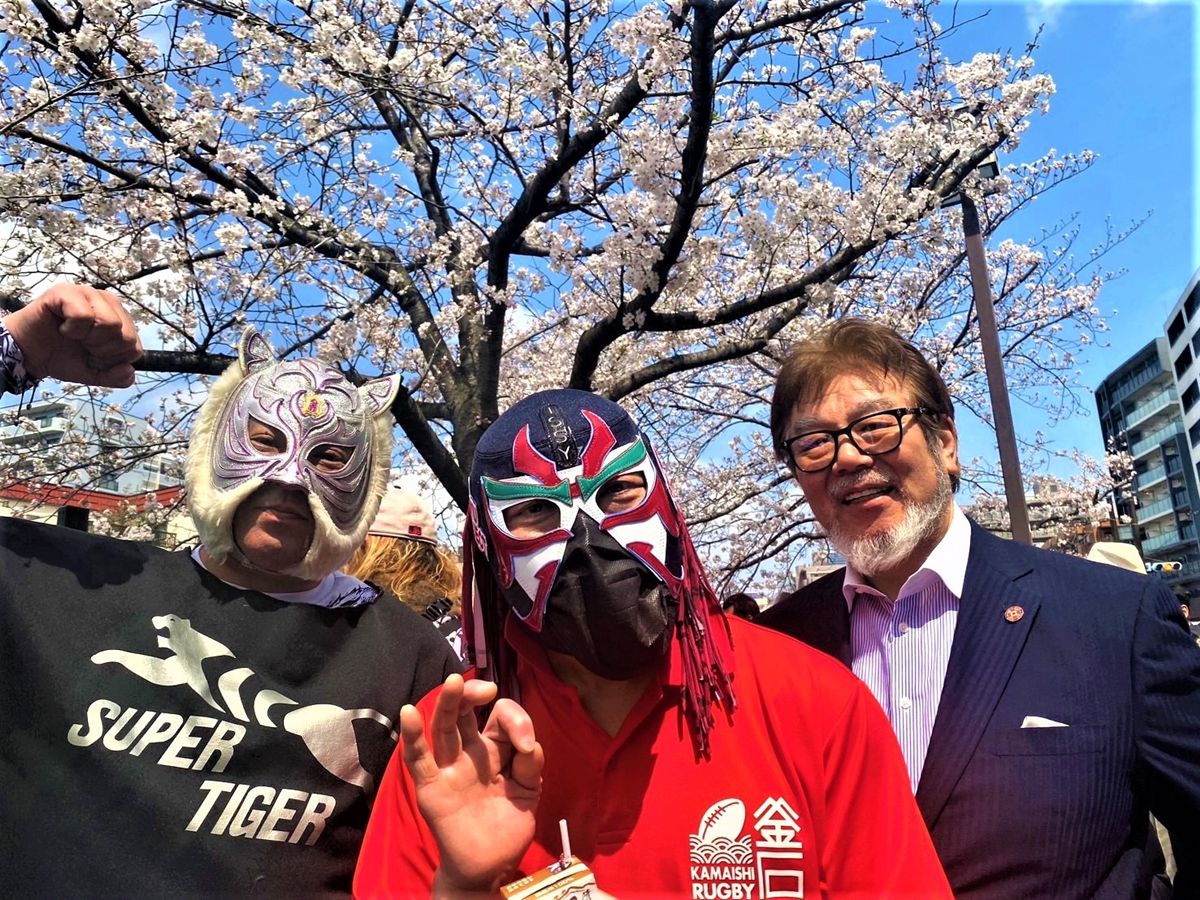 “東北の英雄”ことザ・グレート・サスケ(みちのくプロレス)がプロデュースする恒例行事「第20回大岡川で桜を見る会」(アルファ・ジャパンプロモーション荒井英夫会長主催)が3月30日、横浜市中区の大岡川周辺で開催され、総勢200人以上が集まる盛況となった。