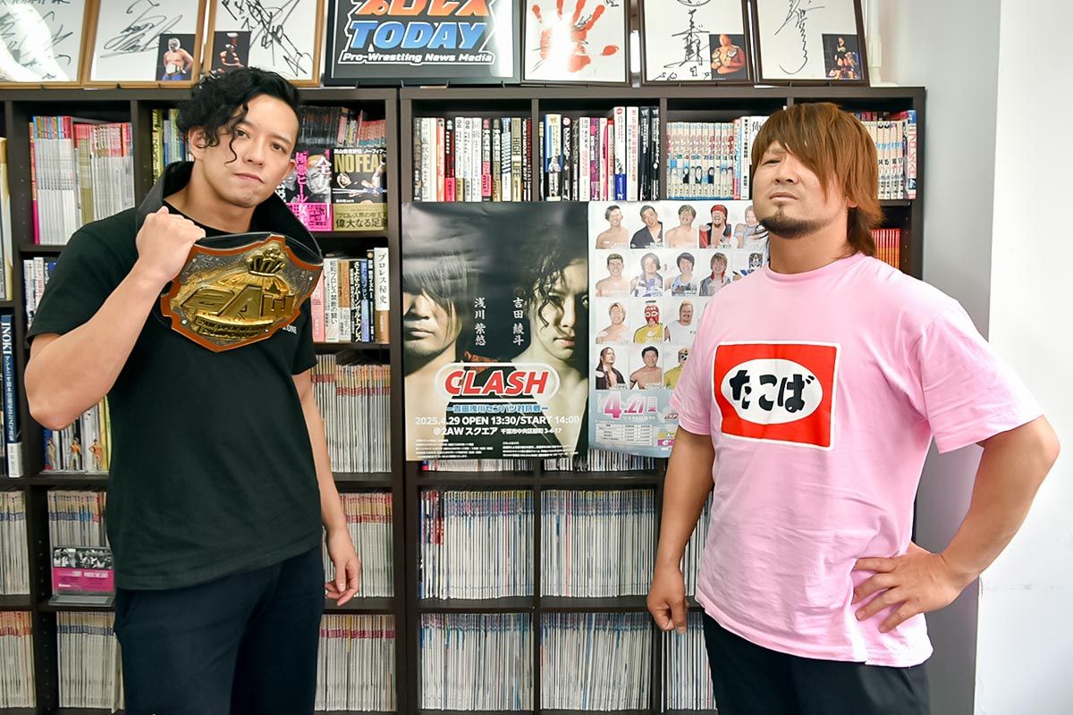 4月29日(火・祝)に千葉・2AWスクエアにて特別大会『CLASH ―吉田浅川選抜対抗戦―』を開催する。2AWのエース吉田綾斗と現在はフリーで活躍する同期の浅川紫悠が、それぞれの選抜メンバーを率いて全面対抗戦を実施。大将戦では吉田&藤田ミノルと、浅川&TORUが対戦する。プロレス人生の節目となる“入門10周年”を迎える両者にとって、今大会は特別な意味を持つ舞台だ。