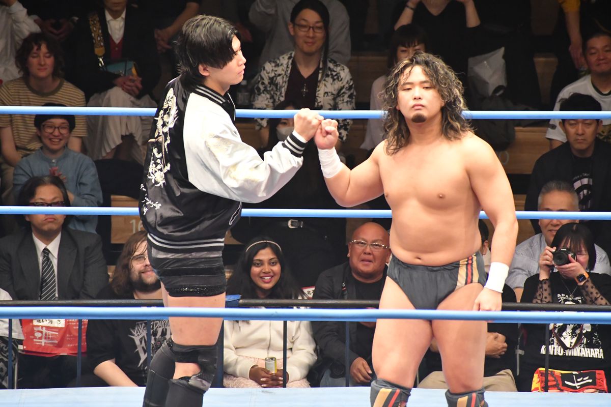 第2試合ではBブロック公式戦として、大森北斗と安齊勇馬が激突。ともに3度目のカーニバル出場となり、2年ぶり2度目のシングル対決が実現した。過去には北斗が1勝、直近の3月のアジアタッグ戦では安齊が勝利しており、五分の実力を背景に注目の一戦となった。