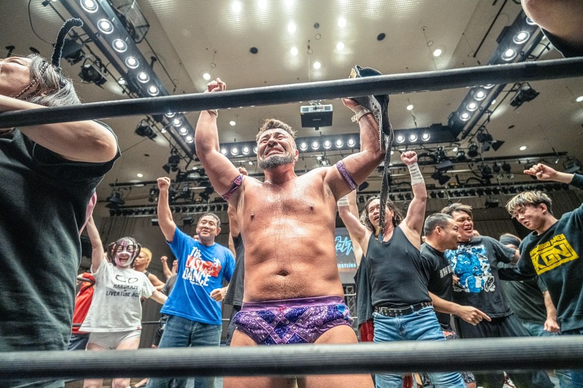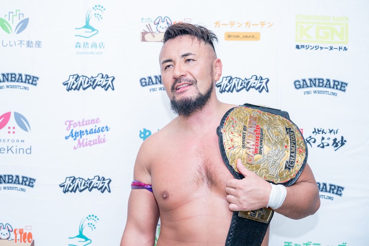 王座奪取ならなかった冨永は「1月に復帰して、今日が3戦目。アキレス腱切ったとき、もう辞めないといけないんだろうなって。でもお客さん、みんなのガンバレが背中を押してくれて。復帰した後、今成さんも凄い頑張ってたから、それも僕の背中を押してくれて。今日120%で挑戦したんですけど、強かった。4回目の挑戦、失敗しちゃったけど、あのタイトルを獲るために戻って来たんであきらめません」と前を向いた。