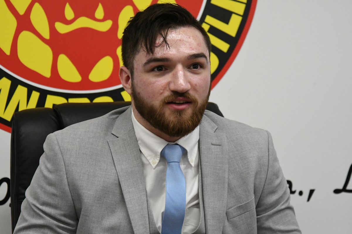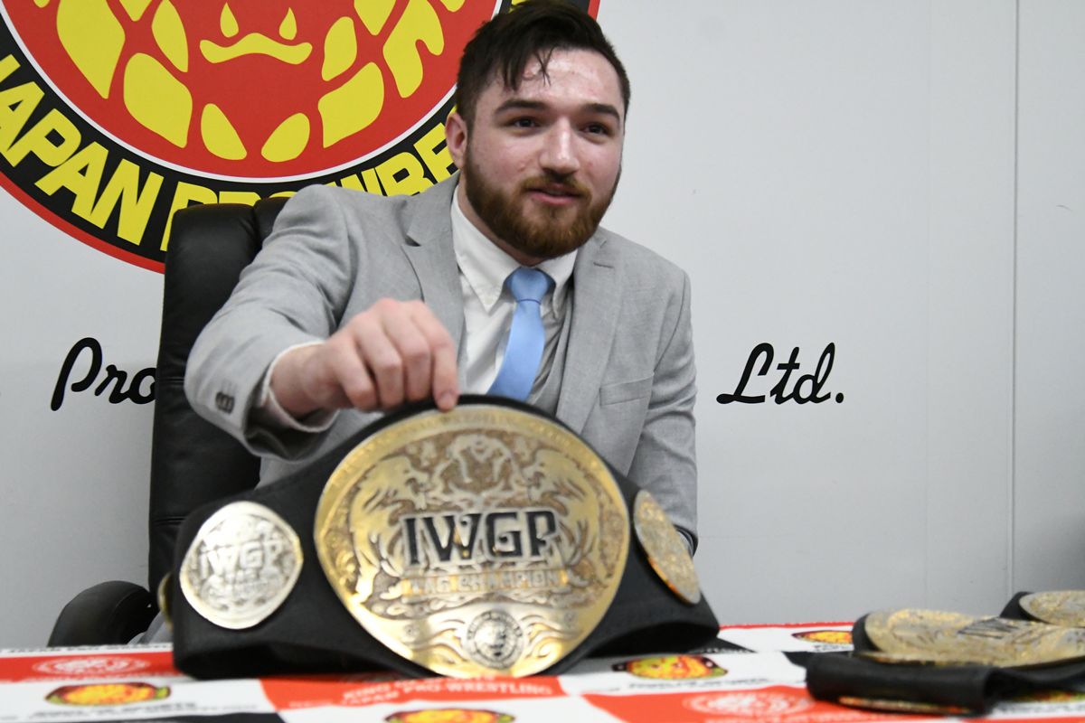 新日本プロレスは4月14日(月)、都内の同団体事務所にて記者会見を開き、IWGPタッグ王者でありUNITED EMPIREの一員でもあるカラム・ニューマンが登壇。タッグパートナーであるジェフ・コブの退団に伴い、IWGPタッグ王座の返上を余儀なくされたことを明かすとともに、今後の進路について力強い決意を語った。