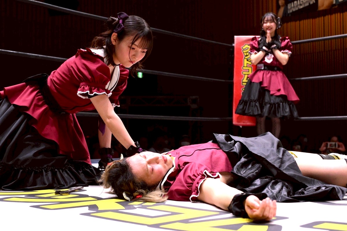 メインイベントでは上坂さんがプロデュースするコンセプトカフェ「Twilight Rouge- トワイライトルージュ – Produced by SUMIRE UESAKA」とのコラボ企画「トワイライトルージュ杯争奪時間差入場バトルロイヤル」が行われ、クリス・ブルックス、上野勇希、彰人、平田、To-y、高鹿佑也、正田壮史の7選手が出場。