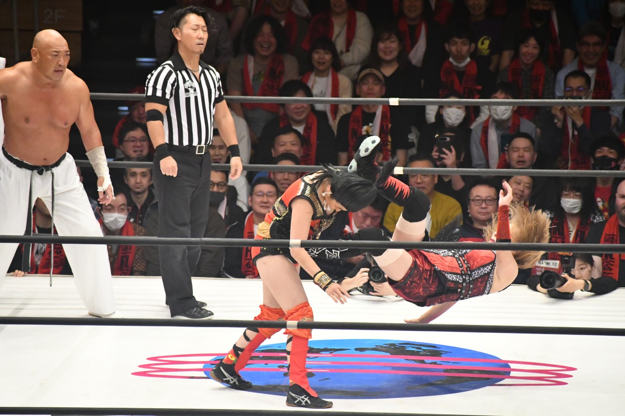 敗れてはしまったが新崎は「自分が里村明衣子とリアルに一番最初に出会ったのは、今から20年ぐらい前のGAEA JAPAN解散の時。里村がヘルニアの手術から復帰した時に、初めてミックスドタッグマッチで組んだ。それから20年の時を経て、里村が引退する前にもう一回タッグを組めたことは非常に感慨深い」とシン・里村を横に語った。