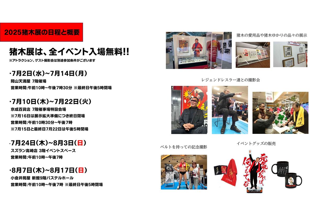 「燃える闘魂・アントニオ猪木展」夏の巡回スケジュールが決定