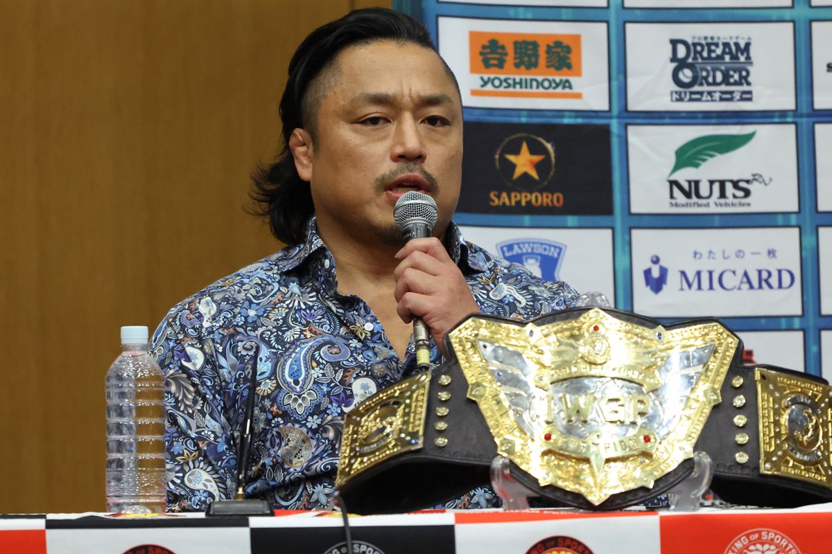 新日本プロレスは5月2日、福岡・レソラ天神5階のレソラホールにて、5月4日に福岡国際センターで開催される『ナッツRV Presents レスリングどんたく 2025』のメインイベント、IWGP世界ヘビー級選手権試合の公開調印式を実施。
