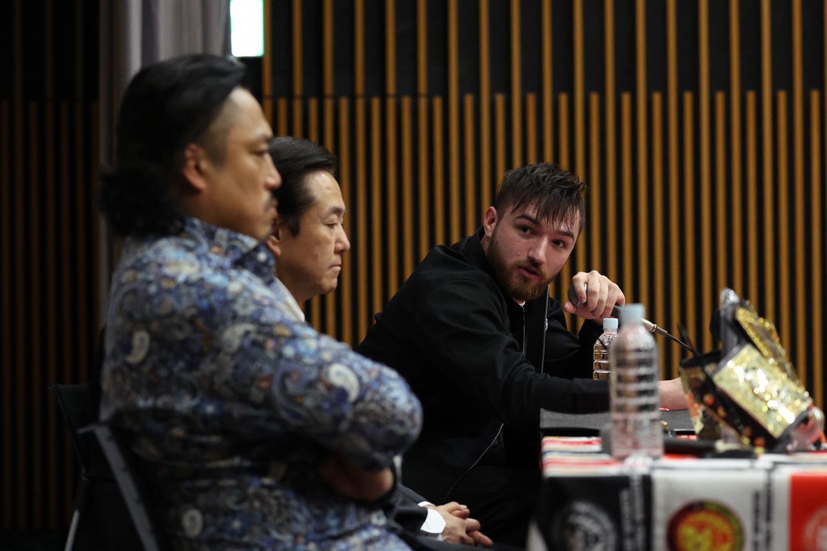 質疑応答では、カラムが勝利すれば史上最年少でのIWGP世界ヘビー級王座獲得、かつIWGPタッグとの2冠王者となることへの所感が問われた。カラムは、「泳ぎ続けなければ溺れてしまうというような気持ちでずっと闘ってきた」と振り返りつつ、「新世代を引っ張っていくのは、間違いなくこの俺であることをここで宣言する」と力強く語った。
