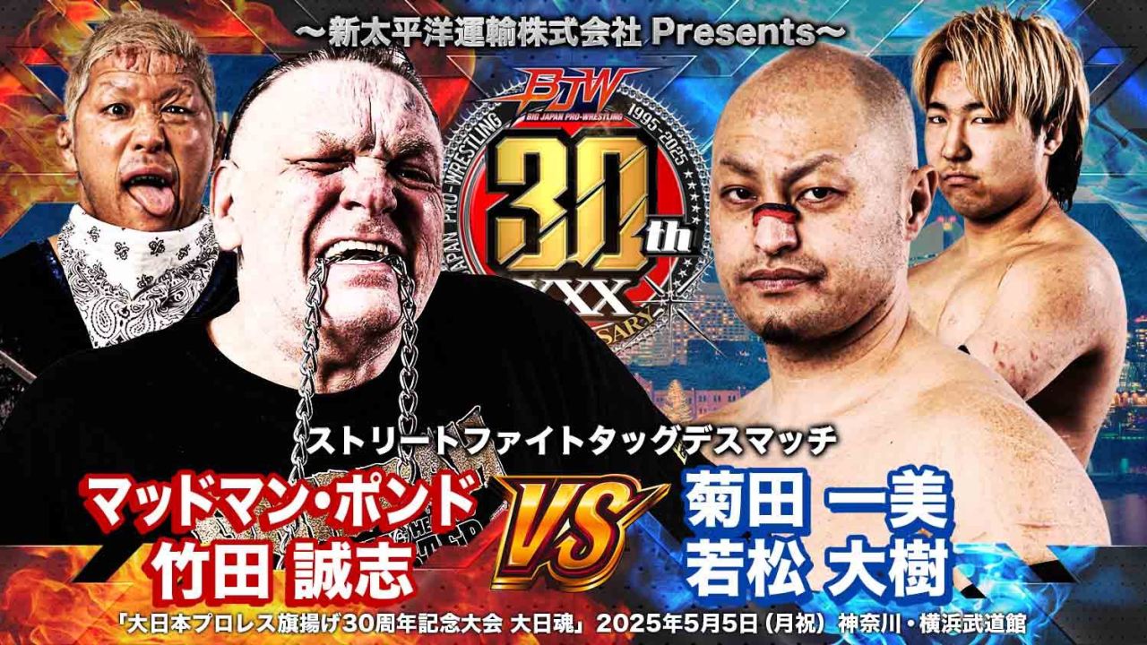大日本プロレスは5日、神奈川・横浜武道館で年間最大のビッグマッチとなる『大日本プロレス旗揚げ30周年記念大会 大日魂』を開催する。