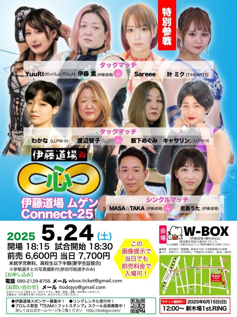 メインイベントでは、伊藤道場代表・伊藤薫がガンバレ☆プロレス所属のYuuRIとタッグを結成し、Sareee&叶ミク(T-HEARTS)と30分一本勝負のスペシャルタッグマッチで激突。女子プロレス界を牽引する実力者同士の激突に、会場の熱気は最高潮に達することが予想される。