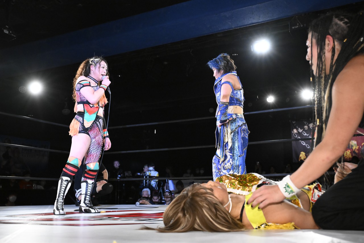 セミファイナルでは、引退ロード中の加藤園子がシン・永島千佳世とタッグを組み、ゴジゾネス連合の松本浩代&山下りなと激突し、シン・永島が山下のスプラッシュマウンテンに沈んだ。