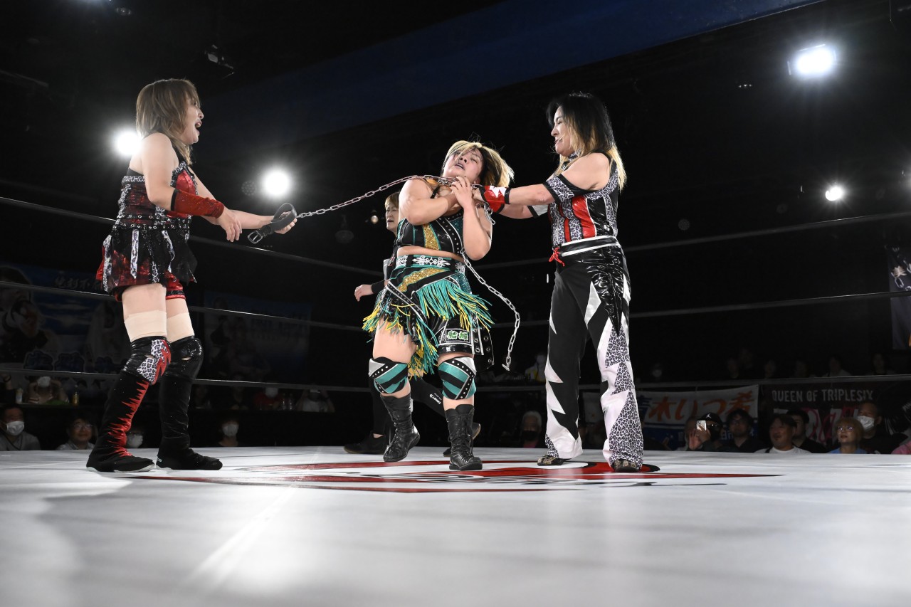 【ファントムリミット】◯安納サオリ&AKINO&ウナギ・サヤカ vs 【チームパワースポット】水波綾&青木いつ希&●花園桃花
