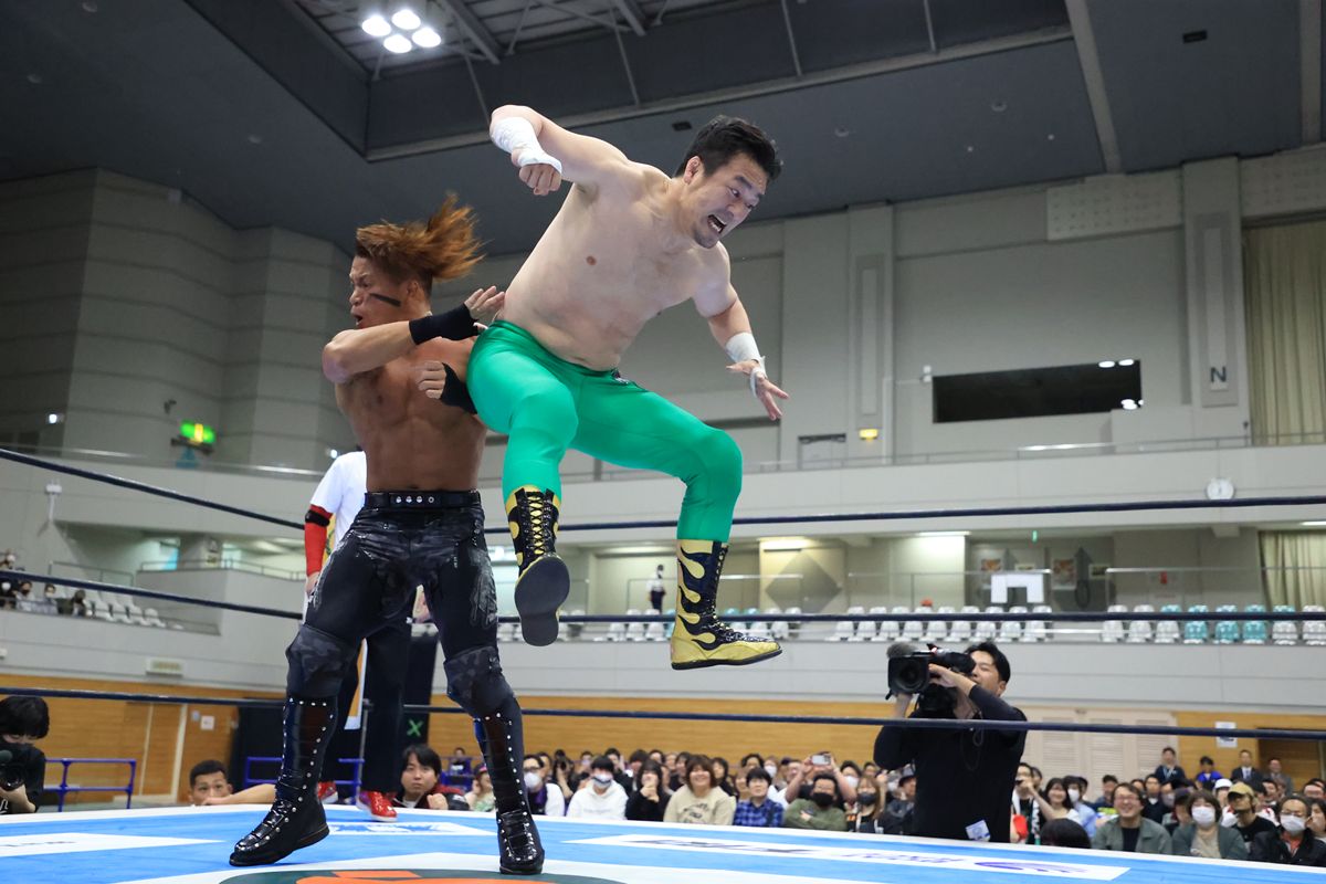 2023年は交通事故により『BOSJ』を欠場していた田口にとって、この大会は復帰の象徴であり、観衆の期待も高まっていた。会場には「田口」コールが響き、子どもから大人まで多くの地元ファンがその背中を押した。田口は「いわぬまPR大使」のベルトを肩に下げて入場。観衆の声援に応えるように、開始直後から積極的に攻勢をかけた。