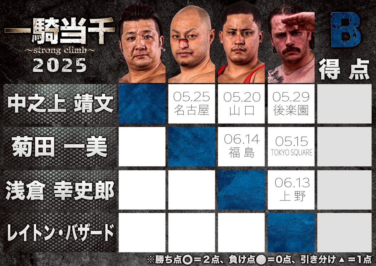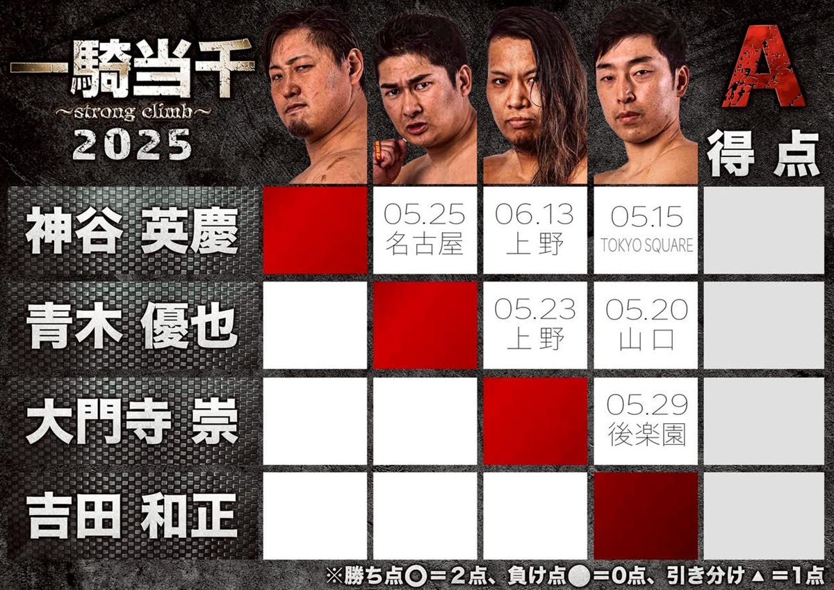 大日本プロレスは、ヘビー級最強を決するリーグ戦「一騎当千~strong climb~2025」の出場選手および開催日程を発表した。今大会はA・Bの2ブロックに分かれた総当たりリーグ戦形式で行われ、各ブロックの勝ち点1位が6月22日(日)後楽園ホール大会での決勝戦に進出する。