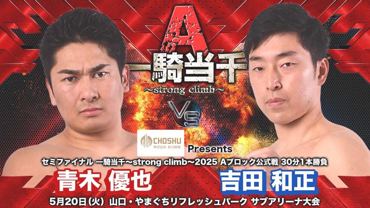 セミファイナルでは、シングルトーナメント「一騎当千~strong climb~2025」のAブロック公式戦が行われ、青木優也が吉田和正と激突。共に次世代の中心を担う存在とされており、優勝戦線を左右する一戦に位置づけられる。