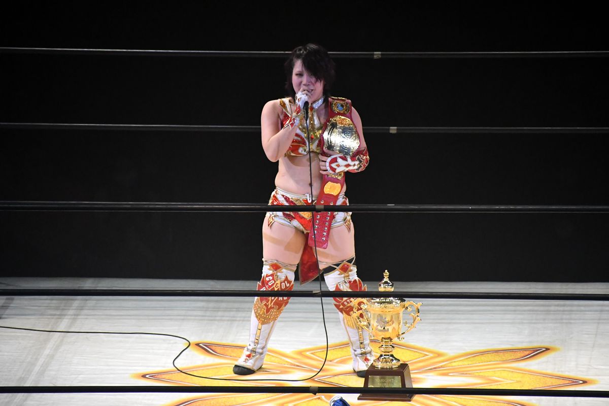「会見で『このタイトルマッチで負けた方は残酷な2年目になるかもしれない』って言ってたよね? でも私たちにはこんなに応援してくれる人がいる。私には最高で最強の明るいマリーゴールドの2年目しか見えねえよ! 私たちでつくっていこうよ。2年目もその先も」