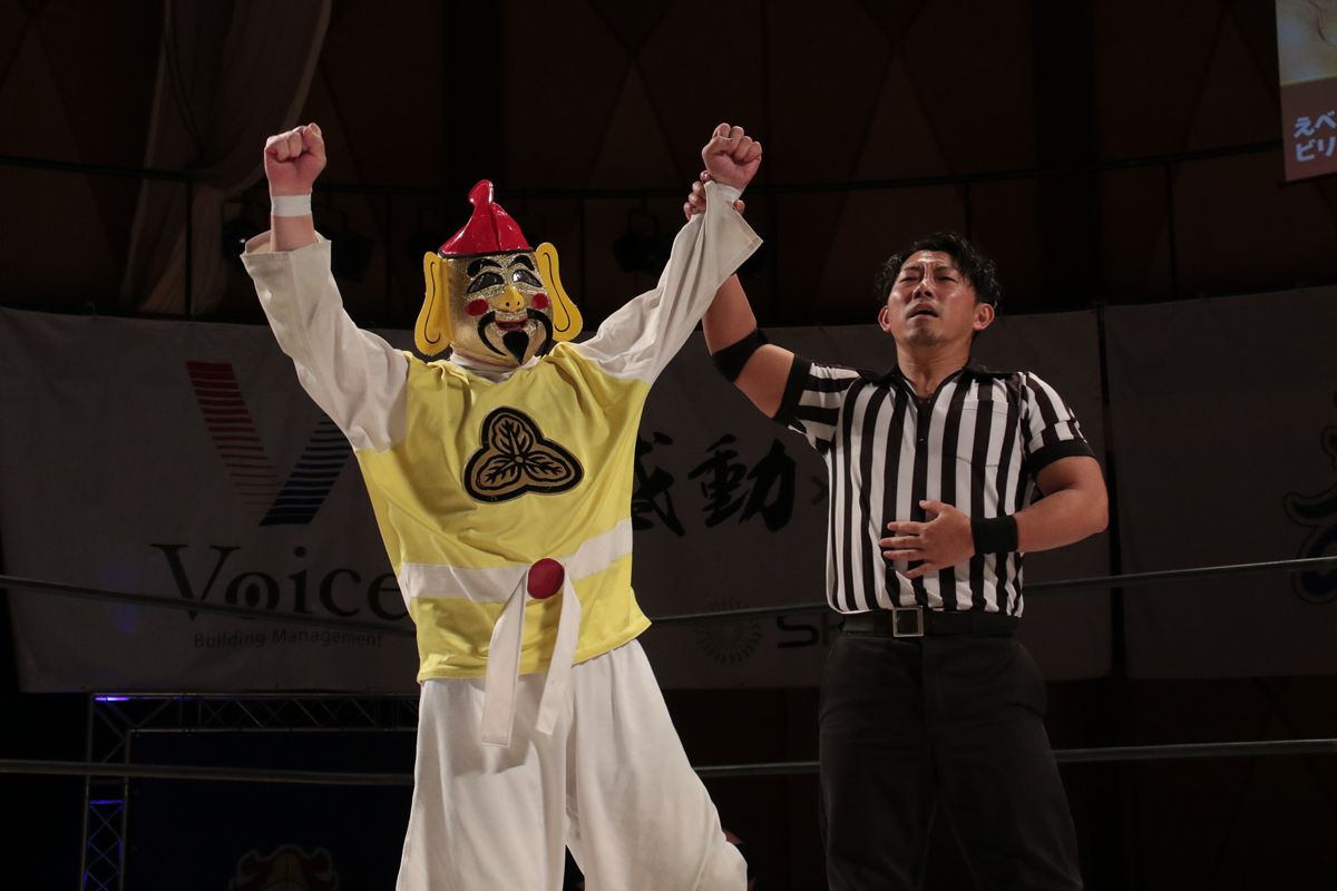 最後は丈一郎がレフェリーを使った攻撃を狙うも逆にレフェリーの攻撃を食らってしまい万事休す。えべっさんが優勝を飾った。