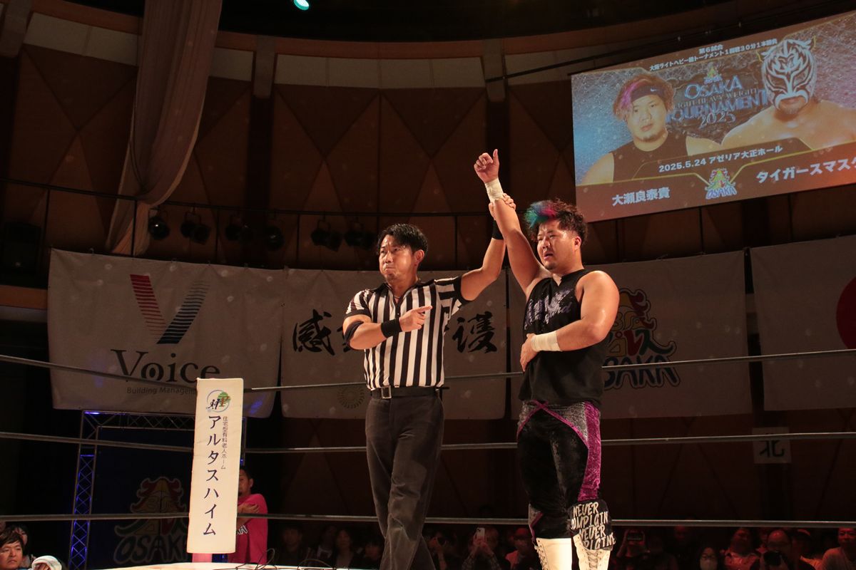 大阪プロレスは5月24日、大阪・アゼリア大正ホールで「第4回大阪ライトヘビー級トーナメント2025~開幕戦・1回戦」を開催し、306人(超満員札止め)の観衆が集まった。