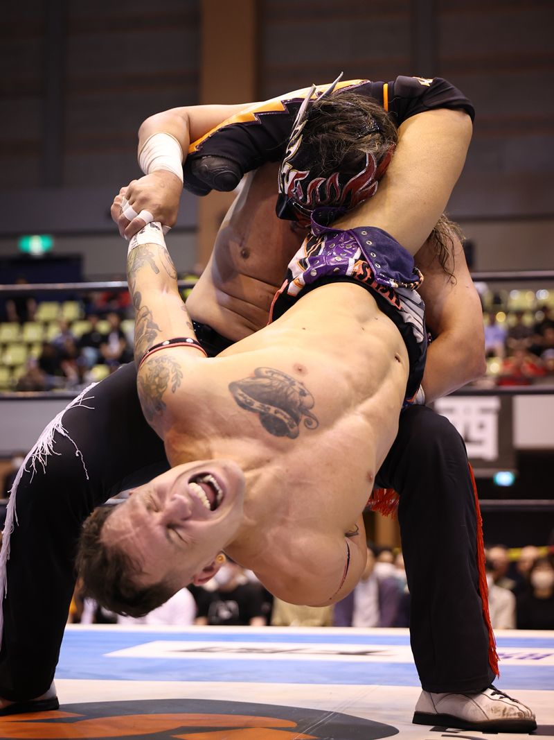 試合終盤、イーグルスは果敢にフィニッシュを狙い、必殺のハイペリオンに繋ごうとするも、わずかに届かず。最後はデスペラードが持ち味を活かし、つり上げ式のヌメロ・ドスで極め切り、執念のギブアップ勝利をもぎ取った。