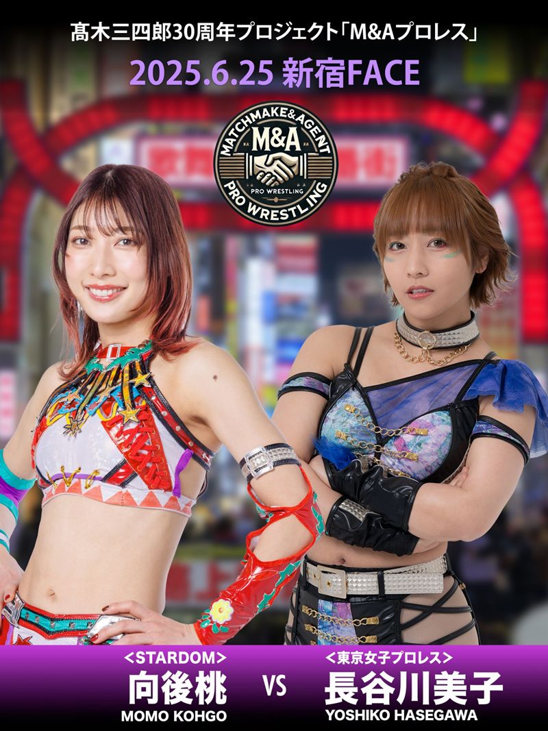 今回の追加カードは、今年引退を発表した長谷川美子のM&Aラストマッチだ。相手はなんと、スターダムの向後桃。2019年にデビューした同期同士、まさに“同期の桜”対決が電撃決定した。