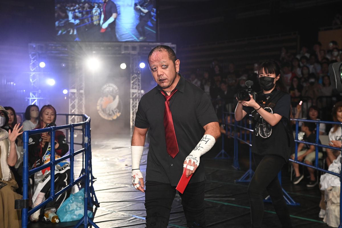 第6試合終了後のリングで予期せぬ展開がファンを騒然とさせた。ジュニアの頂点を競う熱戦の合間を縫って、場内に突如として鳴り響いたのは、あの“デスマッチの申し子”葛西純(プロレスリングFREEDOMS)のテーマ曲「DEVIL」であった。