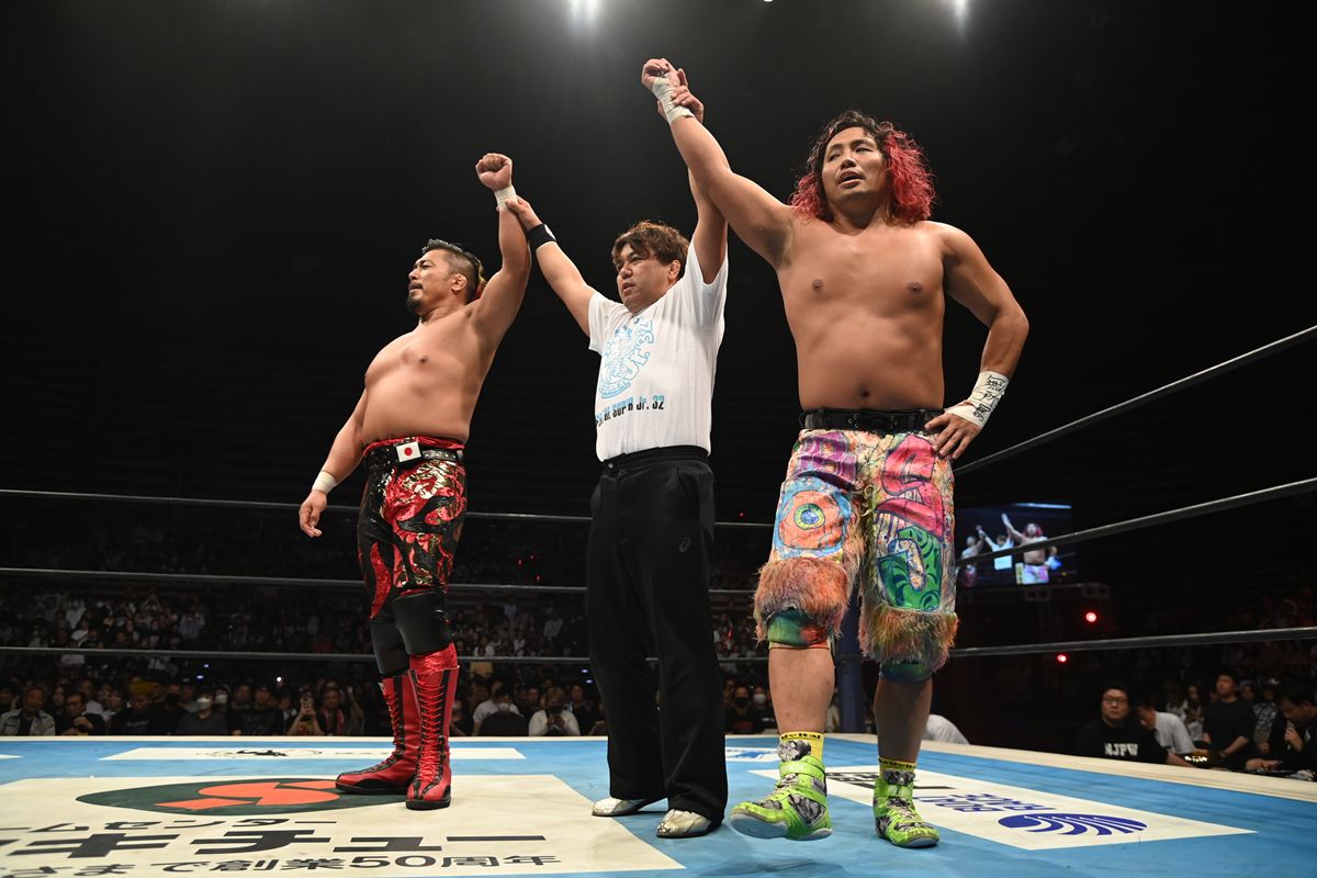 王者・後藤はこの日、田口隆祐と組み、ベルトを肩に入場。表情は静かでありながら、宿命の一戦を前にした覚悟が見え隠れしていた。一方の鷹木は、高橋ヒロムとタッグを結成。いずれも無所属という“野に放たれた者たち”による共闘である。