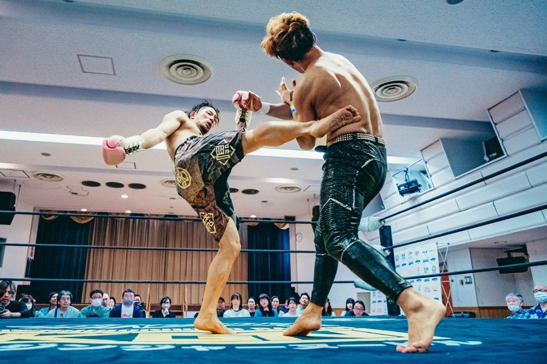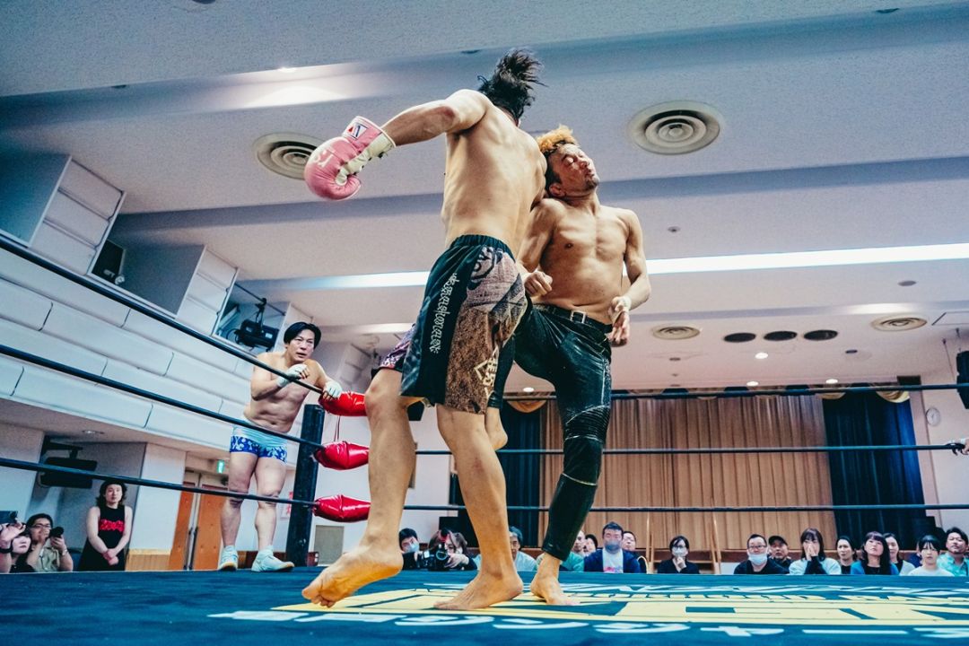 ガンバレ☆プロレスが6月1日、東京・高島平区民館で「グラン・ブルー2025」を開催した。キックボクシングの元J-NETWORKライト級王者・前口太尊(飯伏プロレス研究所)が「ガンプロ・アルティメットルール」でのタッグマッチで、元修斗世界フェザー級王者で元スピリット・オブ・ガンバレ(SOG)世界無差別級王者の勝村周一朗に戦慄のKO勝ちを収めた。前口はこの実績を引っ提げ、同22日の東京・新木場1stRING大会でSOG世界無差別級王者の今成夢人に挑むことが決まった。