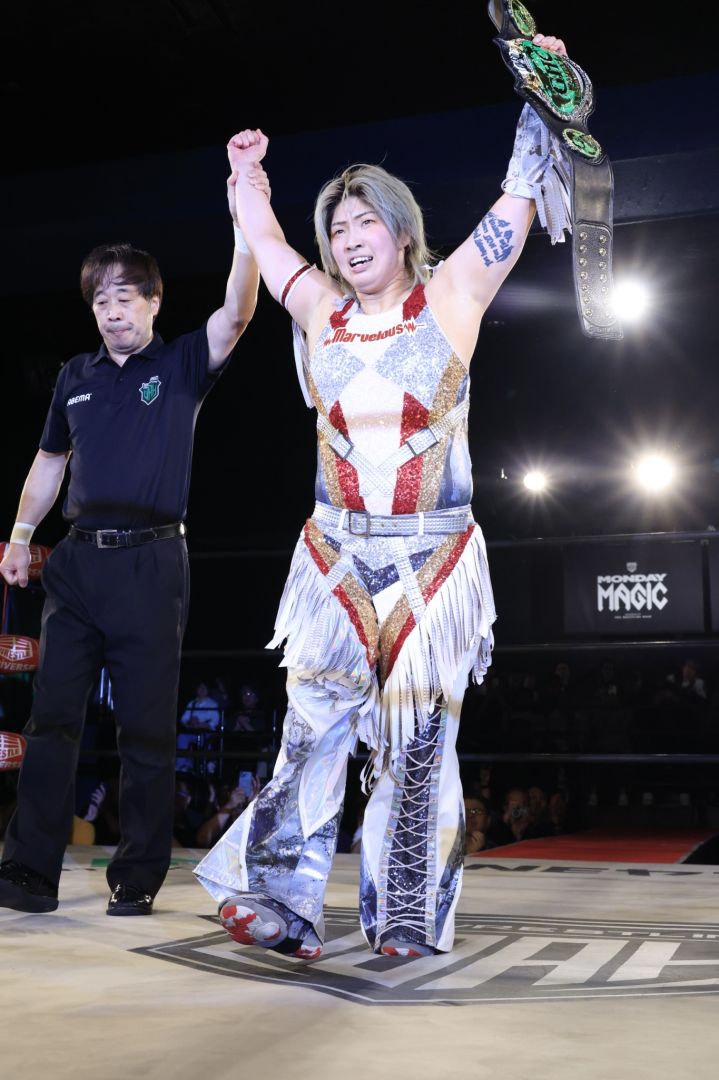 プロレスリング・ノアは6月2日、東京・新宿FACEで「MONDAY MAGIC」を開催、GHC女子選手権試合でマーベラスの彩羽匠がマリーゴールドの天麗皇希をランニング・スリーで破り、第2代王者に輝いた。