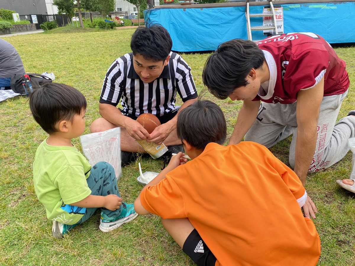 横浜市立大学アメリカンフットボール部 Fighting Seagullsが主催するこの催しで、子どもたちとともに防災に関する知識を深め、非常食の試食などを通じて有意義な時間を過ごした。
