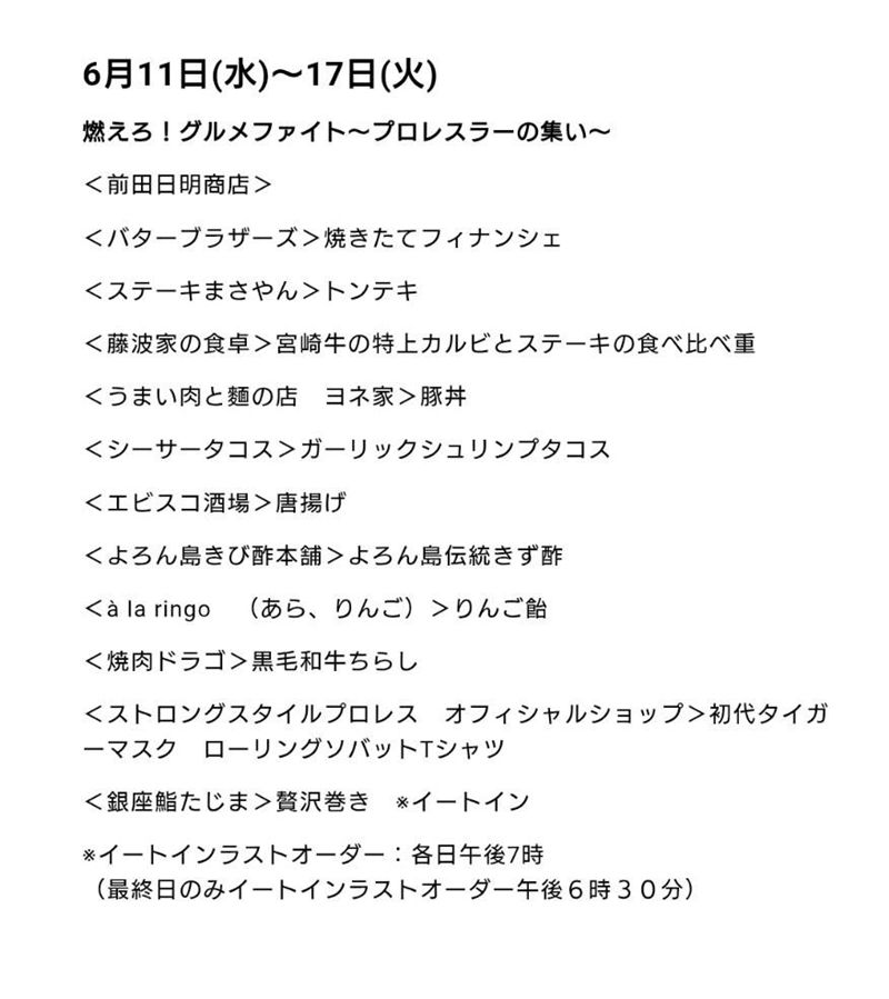 特設イベントでは、各ショップが誇る自慢の商品に加え、プロレスラーとのコラボ商品やオリジナルグッズも販売。さらにはレジェンドレスラーによるサイン会まで用意されるなど、プロレスファンはもちろん、グルメファンにも見逃せない1週間となっている。