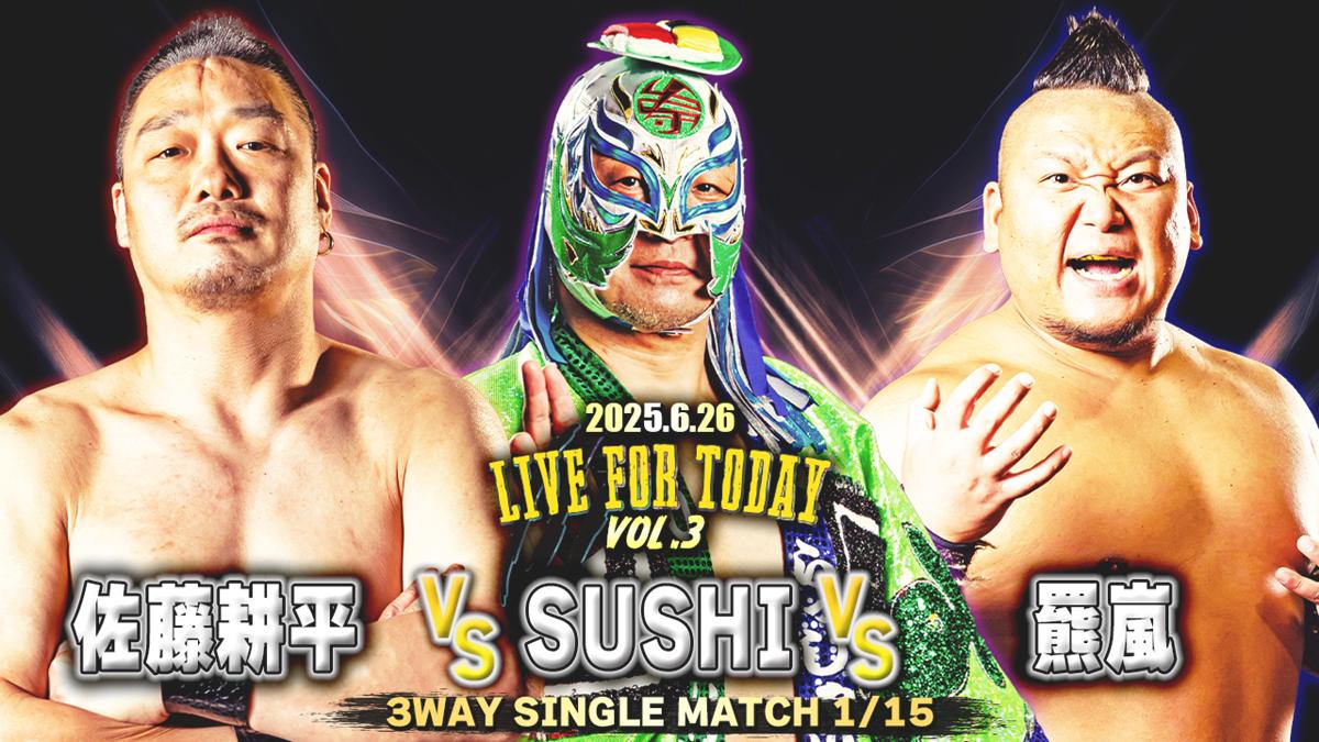 加えて、3WAYマッチ2試合がラインナップに加わった。一つは、ベテランの佐藤耕平、風変わりなファイトスタイルで知られるSUSHI、そして重量級の破壊力を誇る羆嵐という異色の三者による一戦。まさに“スタイルの交錯”が生む意外性が醍醐味となりそうだ。